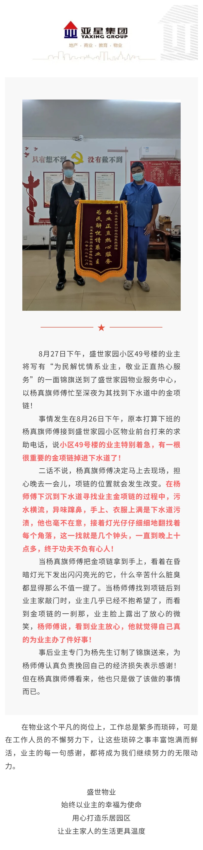 不惧脏累,寻找失物——家园项目锦旗背后的故事