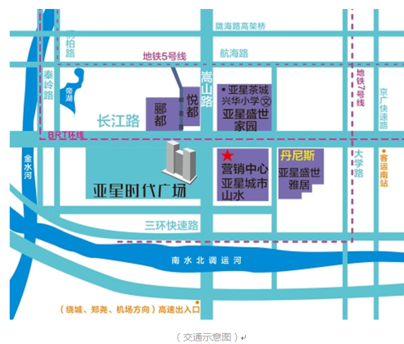 亚星时代广场位于郑州市二七区嵩山路与长江路交汇处西南角,是集办公、商务、休闲、购物为一体的现房写字楼,南北纵向连接二七运河新城与二七区,由第一太平戴维斯担纲物业顾问,深圳市建筑设计研究总院负责建筑设计及园林规划,北京华联、奥斯卡影城、麦噶KTV已签约进驻1-4层商业。